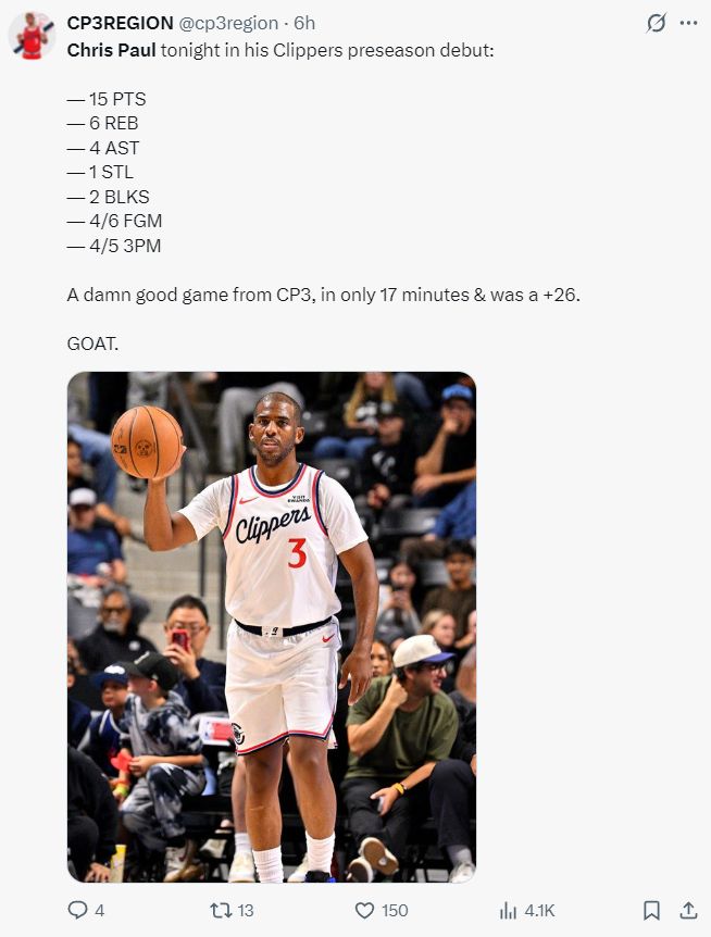 快船媒体:短短17分钟拿到如此优异的数据,正负值+26,他就是GOAT。