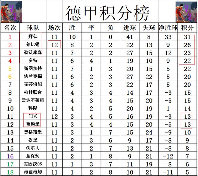 德甲最新积分战报 莱比锡闷平门兴难追拜仁 多赛一场落后5分