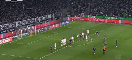本赛季拜仁开局就暴走,上来就一波9连胜,这个月初才在客场被柏林联合逼平终止了连胜,然而追赶拜仁最紧的莱比锡那轮却在客场输了球。上周末拜仁和莱比锡都赢球及时止住颓势,今天莱比锡要想不被拜仁继续拉大分差(拜仁本轮主场对阵降级区弱旅,全取3分问题不大),那么就要在客场击败门兴。开场后莱比锡果然是反客为主展开猛烈攻势,第9分钟,莱比锡获得禁区弧顶前位置不错的任意球机会,劳姆操刀主罚大力兜射,这球没有压住,虽然绕过了人墙,但也高出横梁飞出底线。